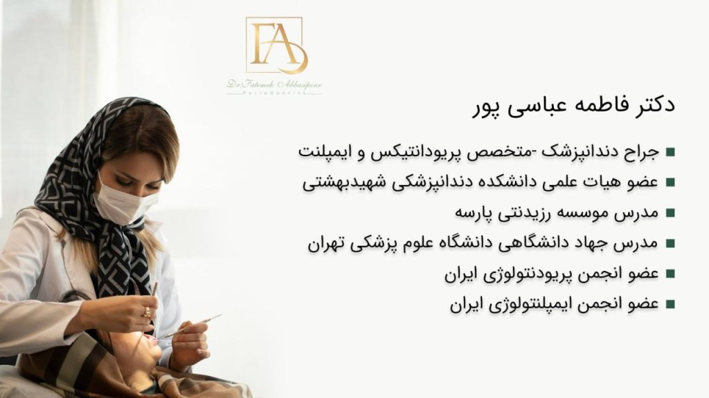 دکتر فاطمه عباسی پور “متخصص ایمپلنت های دندانی” و “دندانپزشکی زیبایی” در مطب تخصصی دندانپزشکی در ولنجک و شمال تهران با ارایه راهکارهای نوین دندانپزشکی شما را به تجربه